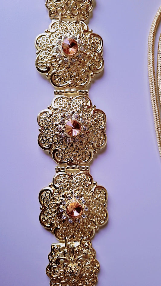 Mdama Ceinture Caftan fermeture Majdoul en Rose Champagne