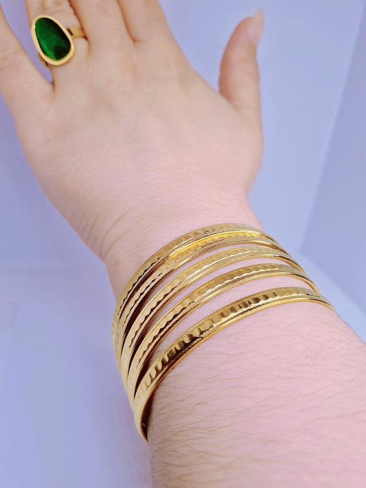 5 Bracelets Rigides Vagues Acier Inoxydabel plaqué Or 18k 20g