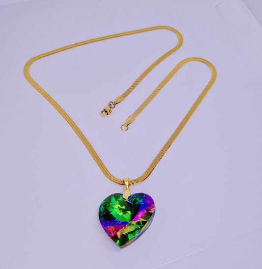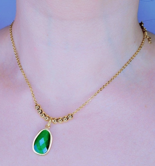 Collier Eclat De Vert Chaud Acier Inoxydable plaqué Or 18k 13g