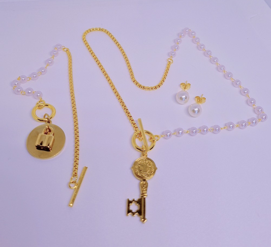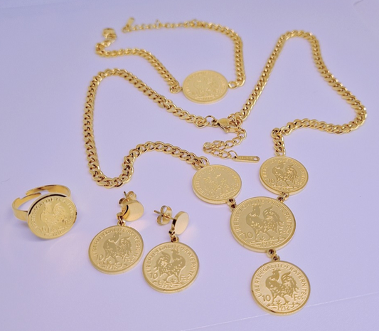 Collier et Boucles d'oreilles Trésor Acier inoxydable plaqué Or 18K 17g