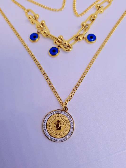 Collier Oeil Turque Acier inoxydable plaqué Or 18k -22g