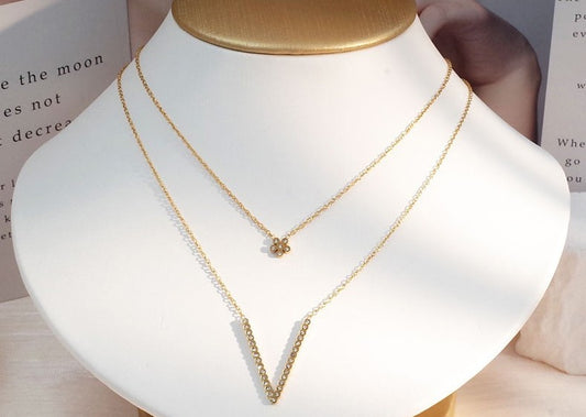 Collier Touche De Couleur Double chaîne Acier inoxydable plaqué Or 18k 32g