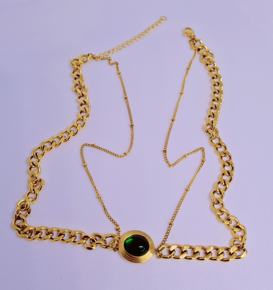 Collier Torsade Perle verte acier inoxydable Plaqué Or 18k -24g