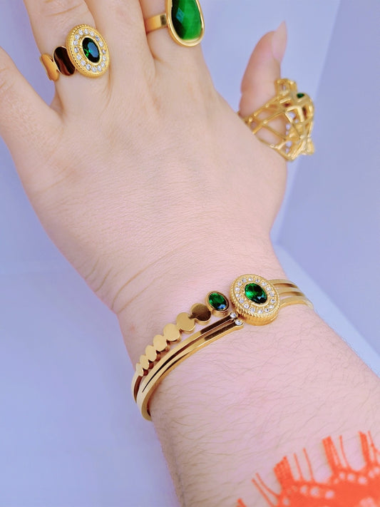 Bracelet Flamme Verte Acier Inoxydable plaqué Or 18k 12g