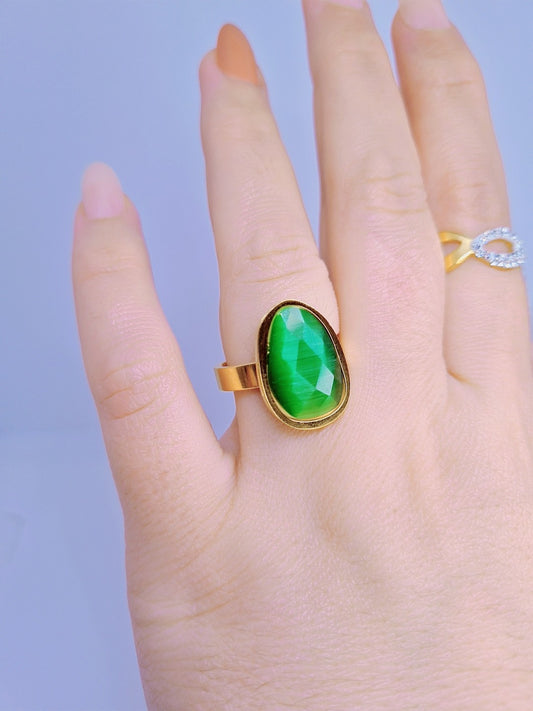 Bague Flamme Verte Acier Inoxydable plaqué Or 18k 9g
