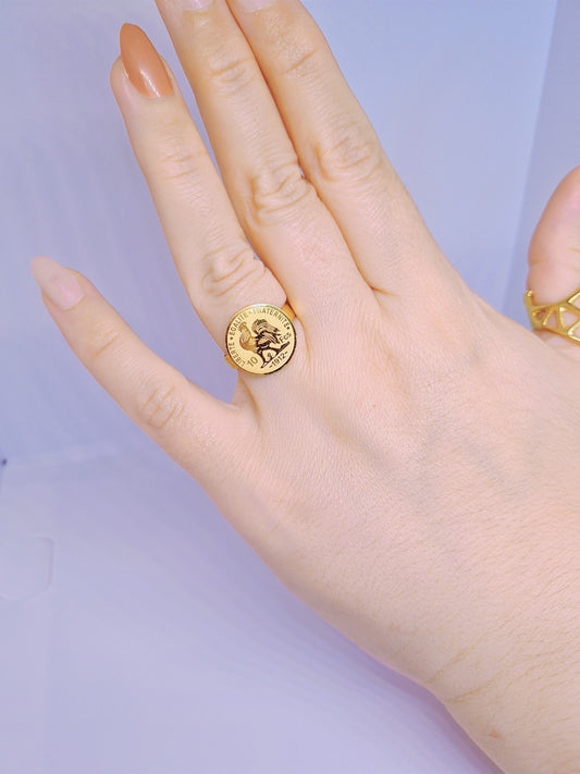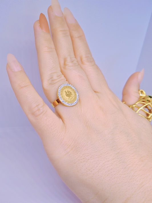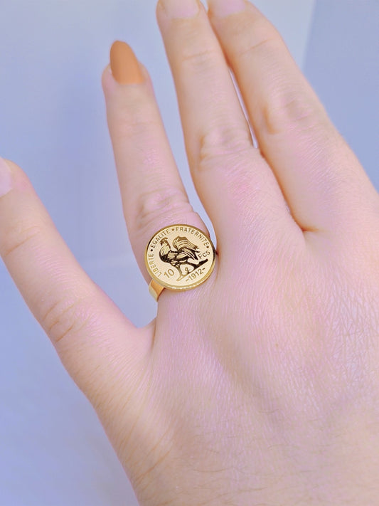 Bague Coq de Liberté Acier inoxydable plaqué Or 18K 12g [taille réglable > 8]