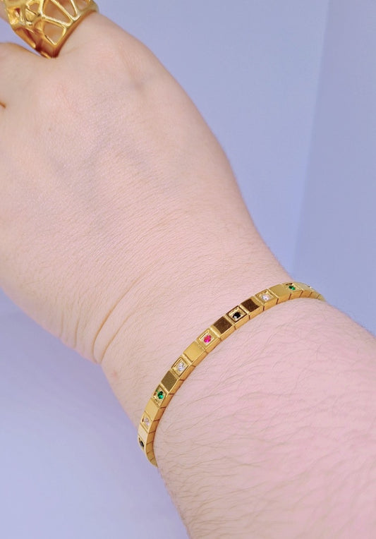 Bracelet pics colorés Acier inoxydable plaqué Or 18K - 26g