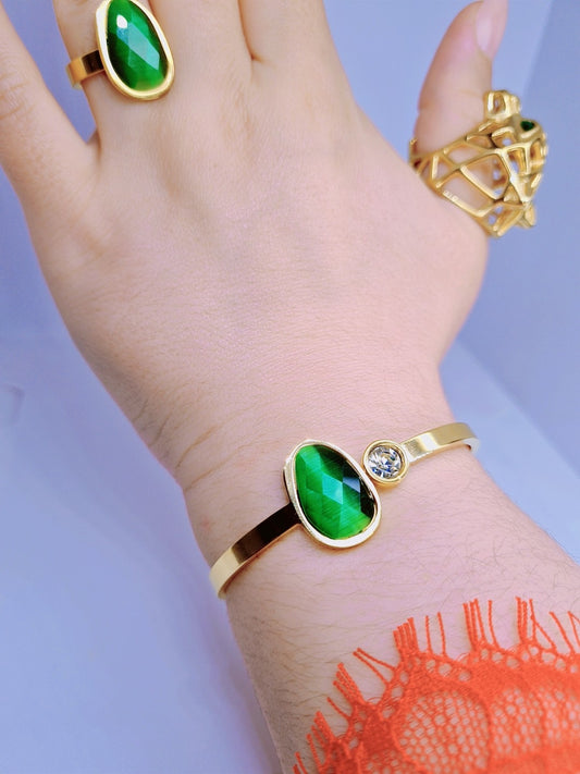 Bracelet Flamme Verte Acier Inoxydable plaqué Or 18k 12g