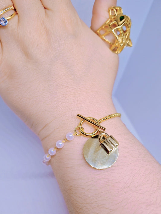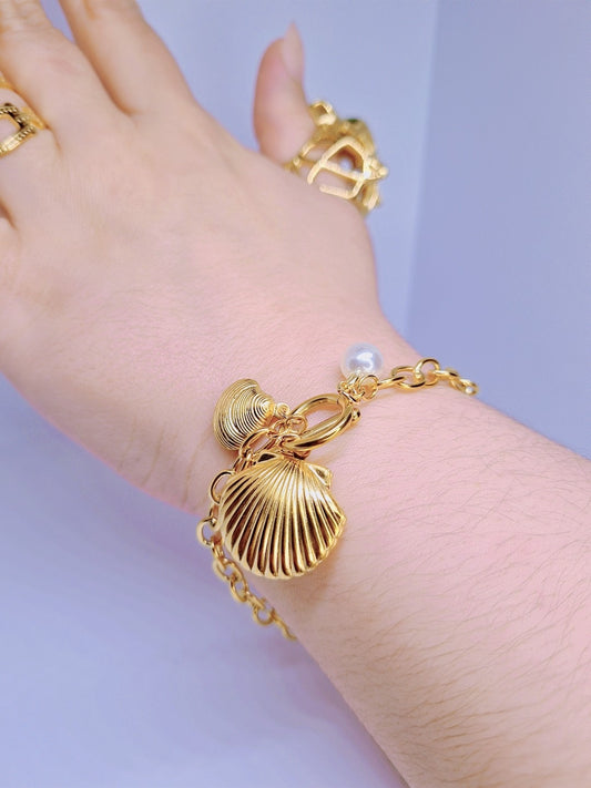 Bracelet Coquillage Littoral Acier Inoxydable plaqué Or 18k 15g