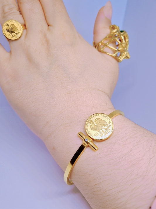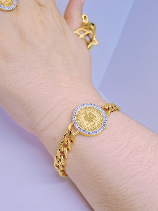 Bracelet Coq de Liberté Acier inoxydable plaqué Or 18K 20g