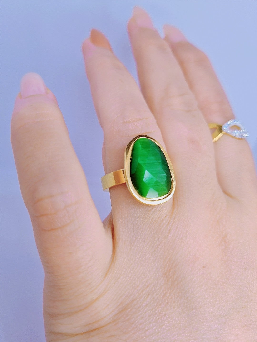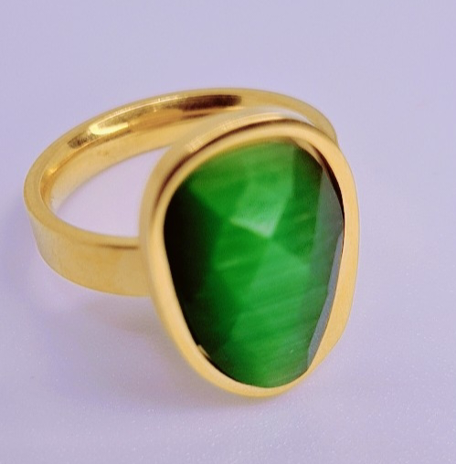Bague Flamme Verte Acier Inoxydable plaqué Or 18k 9g