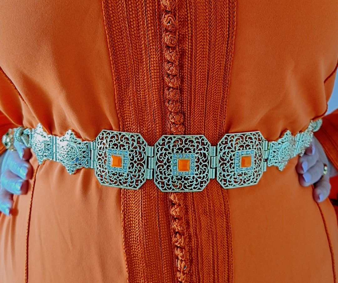 Sublimez votre silhouette avec la Mdama Ceinture Caftan fermeture Majdoul en Orange un accessoire qui mêle harmonieusement tradition et élégance contemporaine. Cette ceinture, finement travaillée, est l'accent parfait pour cintrer et rehausser vos caftans avec une touche de couleur vibrante et sophistiquée. Idéale pour toute cérémonie ou événement spécial, elle promet d'ajouter un éclat spectaculaire à votre tenue.